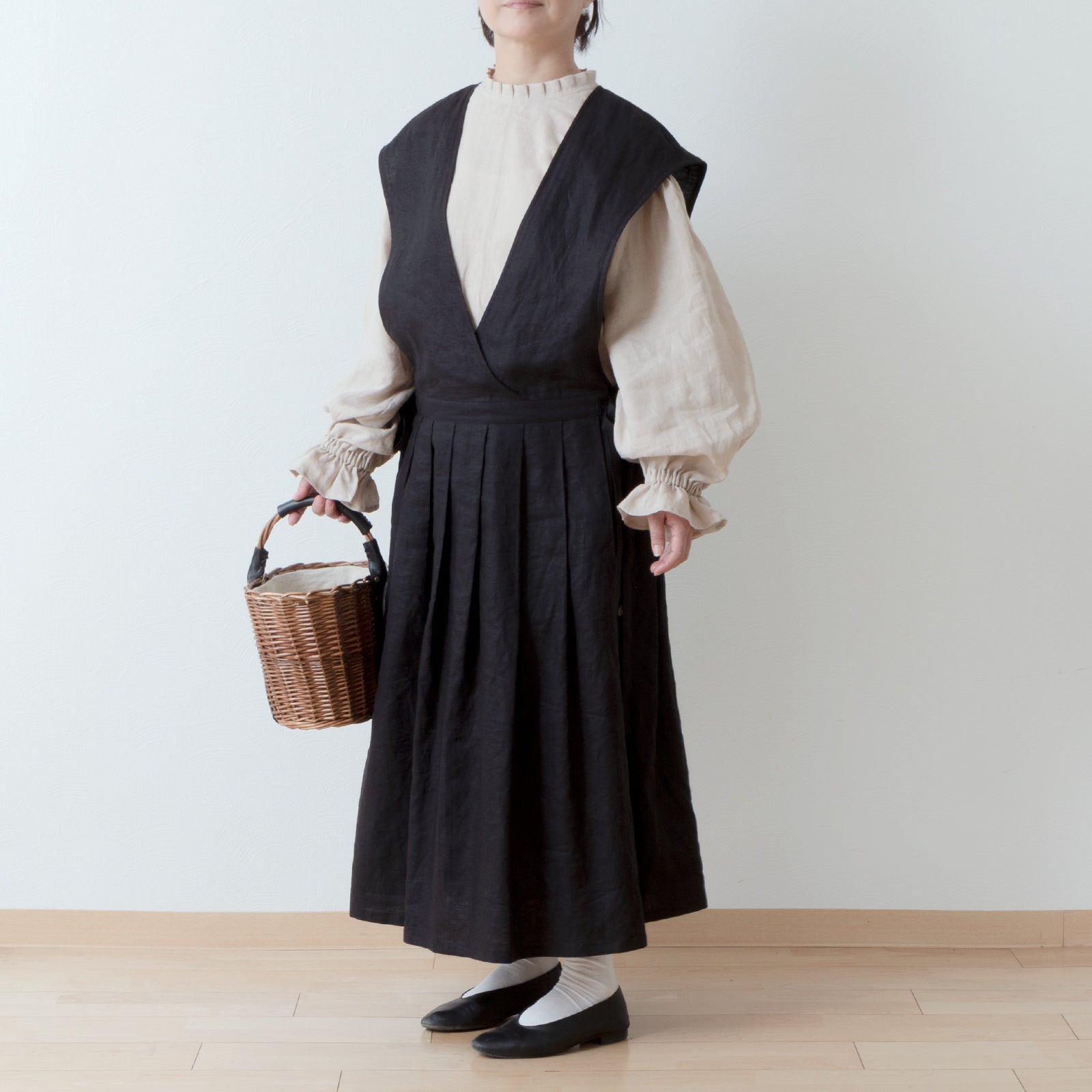 60番手の細糸の透け感があるリネンなので、清涼感と軽やかさがあり、暑さ残る季節に心地いい着心地です。